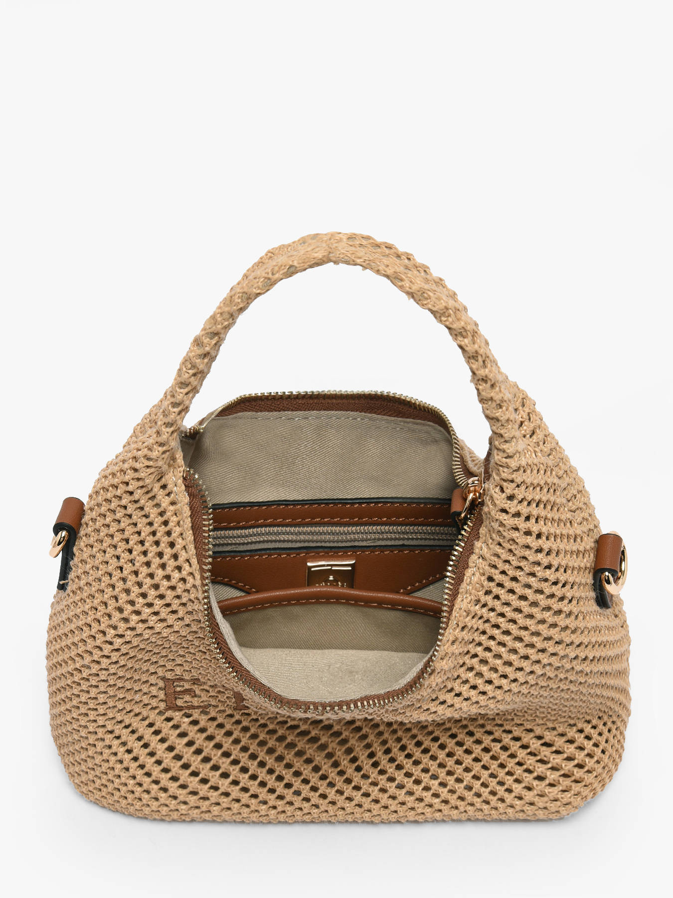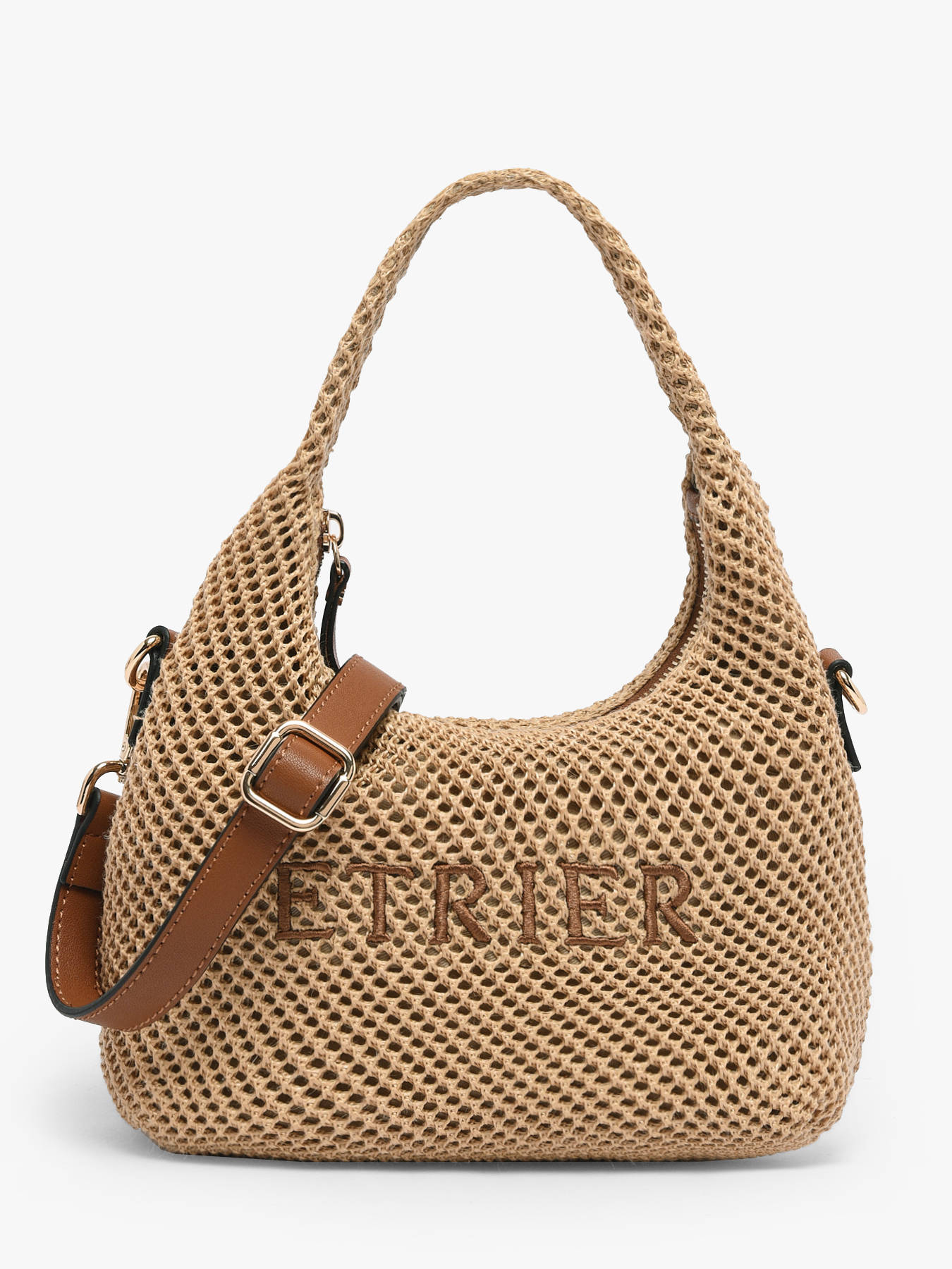 From the BAOBAB line by ETRIER, this crossbody bag stands out with its hobo shape and naturally relaxed silhouette. Inspired by raw, organic materials, the BAOBAB line embodies a summer spirit where freedom, comfort, and refinement are expressed with elegance. Crafted primarily from polypropylene and delicately trimmed with cowhide leather, this model strikes a balance between natural texture and refined finishes, resulting in a look that is both authentic and contemporary. Its S size is perfect for lightweight everyday use, while a larger M size is also available to suit every preference. Versatile in design, it can be carried by hand thanks to its 13 cm handle, or worn crossbody with its adjustable and removable shoulder strap. The zip closure ensures practical and secure use. Inside, one slip pocket and one zip pocket provide optimal organization for your essentials. Designed for the warmer months, the BAOBAB bag combines natural style, everyday comfort, and casual elegance to accompany you throughout the day with ease.