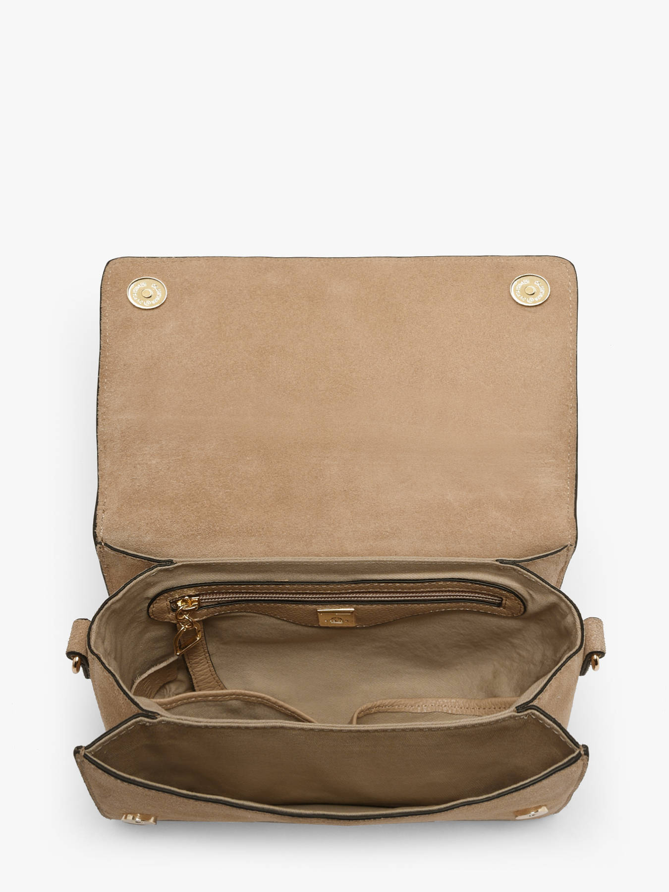 The ETRIER crossbody bag from the ALTESSE SUEDE line is available in model M, the largest size. This new version of our iconic line is crafted from soft, warm suede leather, combining a timeless elegance with a refined look. The back of the bag is made from grained leather to ensure better structure and durability. It features a magnetic flap adorned with the signature gold-tone Etrier jewel, a small handle for an elegant hand carry, and an adjustable, removable shoulder strap for versatile styling.