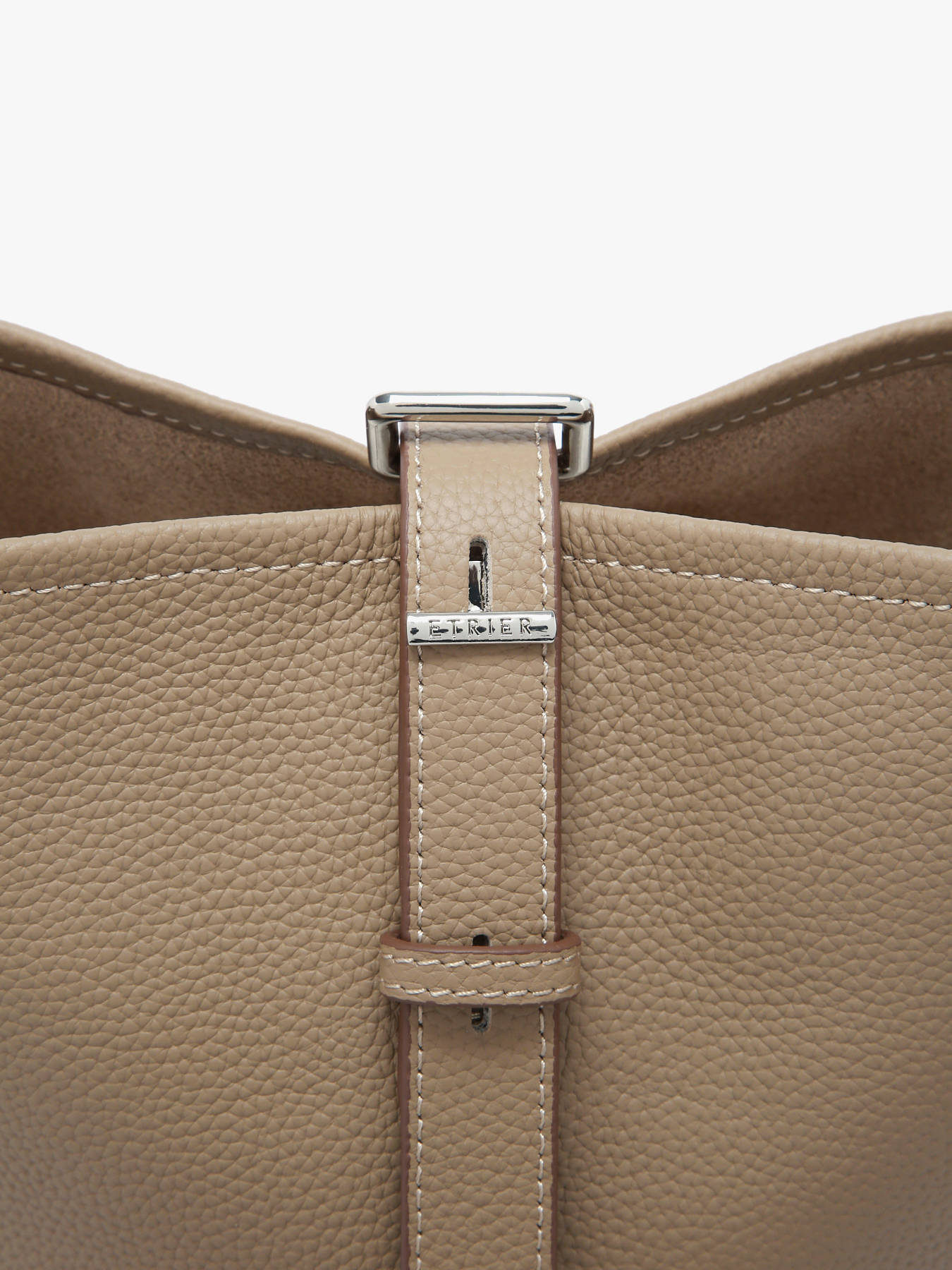 The S shoulder bag/backpack in the CAVALIER line by ETRIER is made from full-grain cowhide, combining quality and elegance. It stands out for its versatility thanks to its multiple carrying options. Worn as a classic shoulder bag, it can also be easily transformed into a backpack. Simply reposition the inner pouch, adjust the details and re-group the shoulder strap to adopt the backpack configuration. The bag features a modern logo with the ETRIER brand letters, embossed for a discreet, refined finish. Inside, a cotton pouch provides a practical space for organising your personal belongings. A versatile, elegant and functional model, ideal for a dynamic everyday life. This bag is also available in a larger size.