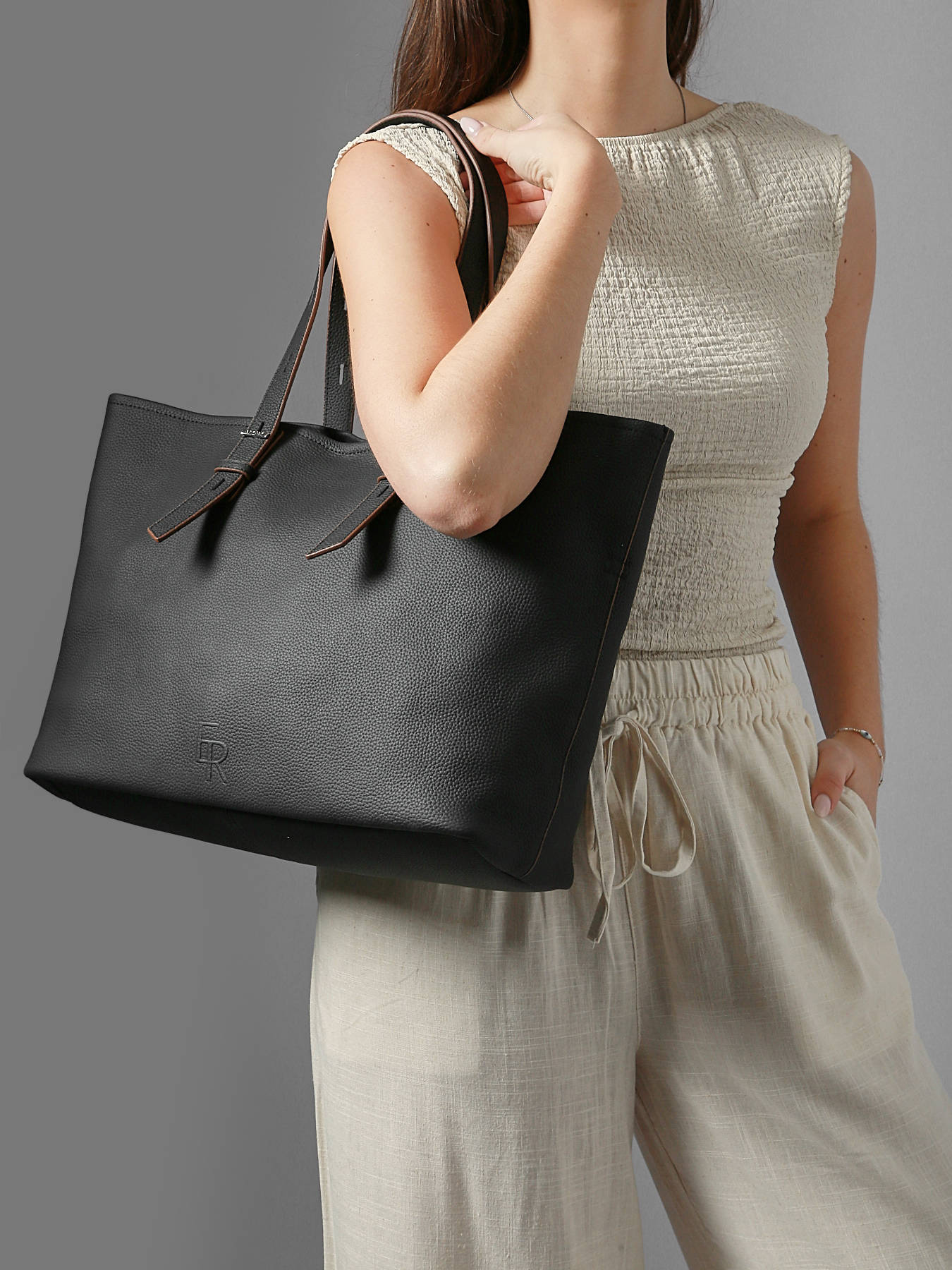The CAVALIER tote bag by ETRIER is made from grained full-grain cowhide, offering both sturdiness and elegance. Its handles are adjustable thanks to a clever little detail, so you can customise the way you hold it. The bag closes securely with a magnetic snap, and its interior features a large detachable cotton pouch, ideal for protecting and organising your belongings. The modern logo, embossed on the leather, features the ETRIER letters for a discreet touch of sophistication. With its generous space, the bag can also carry A4 documents, combining practicality and style. A spacious, refined bag that's the perfect elegant accompaniment to your everyday life.