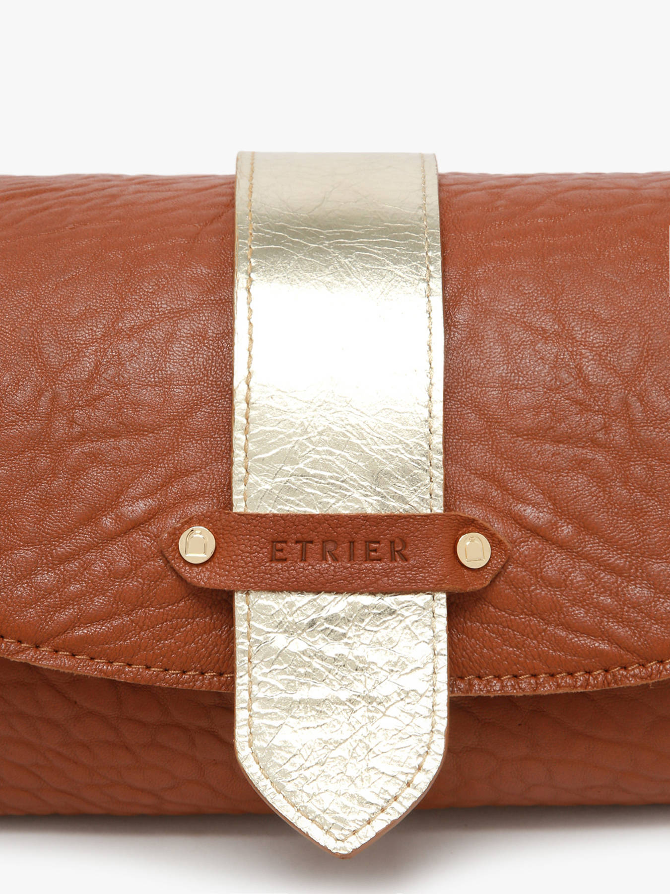 The leather-lined interior includes three compartments, including a central zipped section, offering effortless organization for your personal belongings. The structured base ensures the bag maintains its shape over time. The natural leather patch embossed with the ETRIER logo is adorned with a small French flag, adding a refined and distinctive touch.