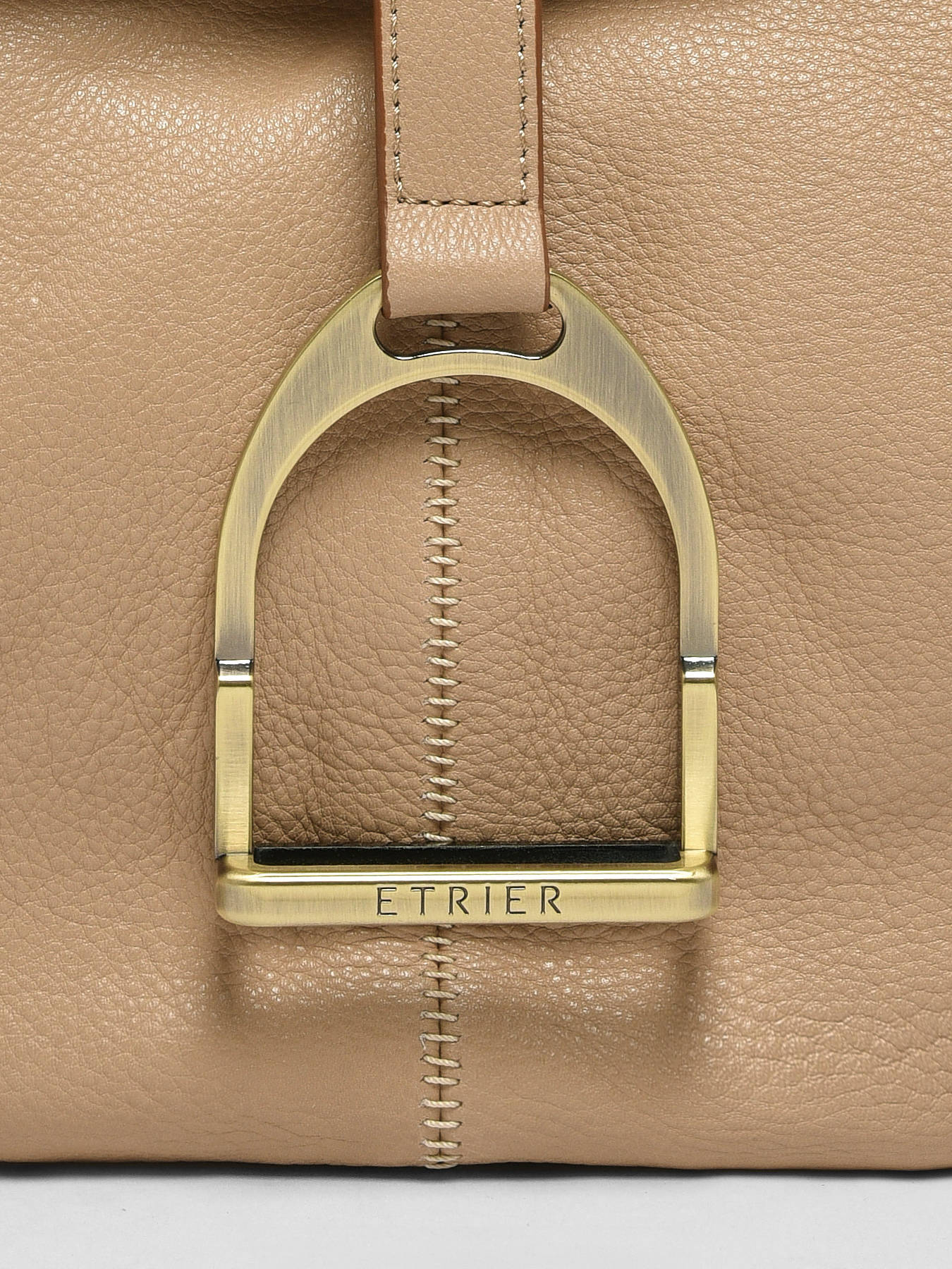 Elegant and compact, the ETALON S bag by ETRIER embodies a chic and feminine everyday style. Crafted from full-grain cowhide leather, it stands out for its supple feel and impeccable structure. Its magnetic closure is enhanced by the iconic suspended stirrup jewel, an elegant signature of the ETRIER house. The cleverly designed interior features three compartments, including one zipped compartment, allowing you to organize your essentials with ease. Designed for comfortable shoulder wear, it features a 25 cm handle, ideal for accompanying your active days. A timeless leather bag, perfect for adding a fashionable touch to all your looks.